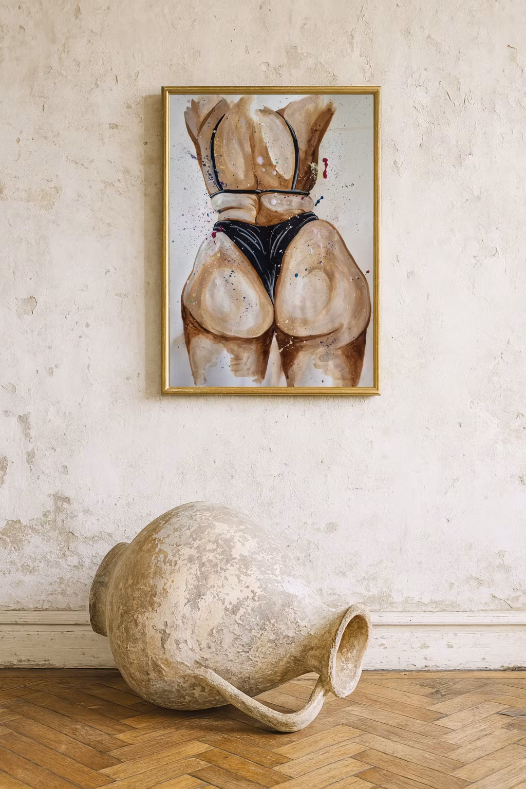 Detta konstverk talar om självacceptans, frihet och stolthet. Det handlar inte om perfektion, det handlar om närvaro. Ett slående statement-verk som ger både sensualitet och styrka till vilket rum som helst.