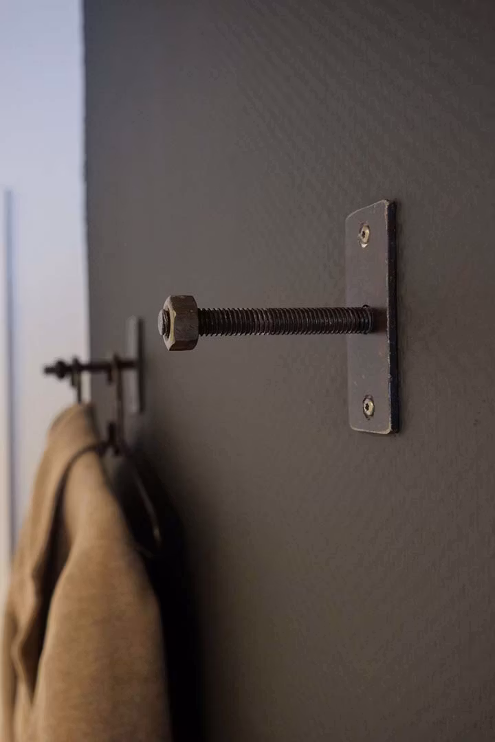Krok tillverkad av järn. Denna lilla, udda krok är både en blickfångare och mycket funktionell med en enkel och industriell design. Kan användas i alla husets rum. I köket för kökshanddukar och köksredskap, i badrummet för handdukar och smycken, i vardagsrummet för tavlor och andra dekorationer och i hallen för halsdukar och diverse accessoarer. En enda krok med så många möjligheter. Den lilla järnplattan är utrustad med två hål så att den kan monteras säkert på väggen. Du kan hänga den både vertikalt och horisontellt, det är upp till dig.