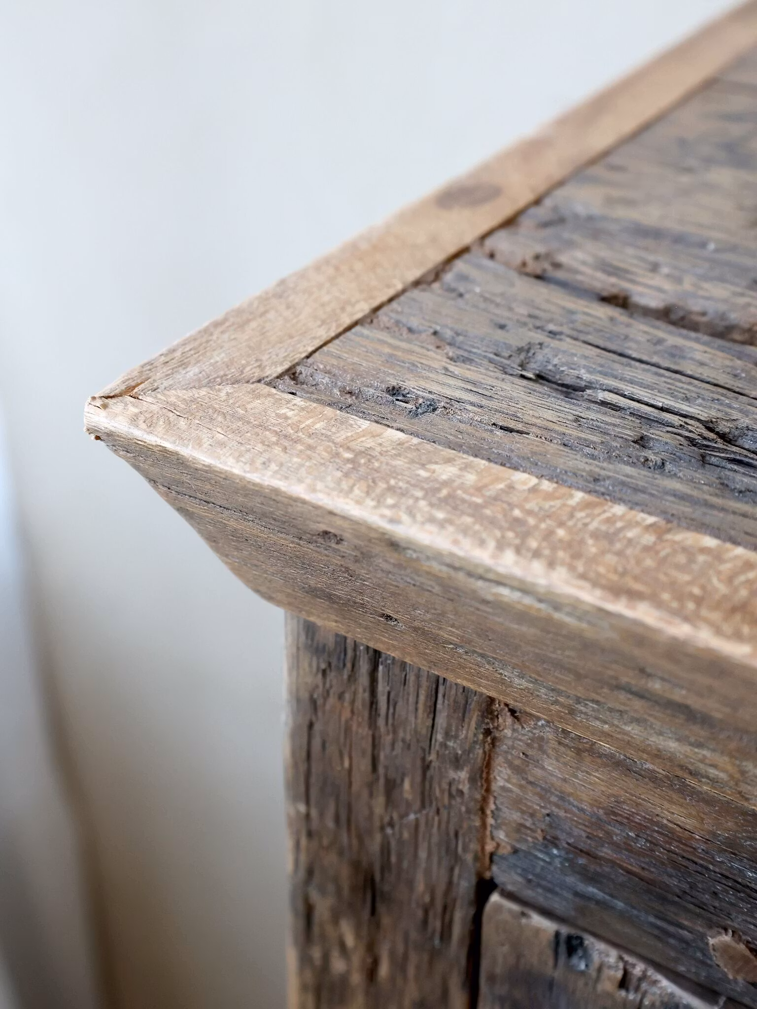 Ett charmigt och hållbart skåp tillverkat av återvunnet trä, där varje detalj bär spår av sin unika historia. Skåpet fungerar lika bra i köket, hallen eller vardagsrummet och blir en karaktärsfull inredningsdetalj.