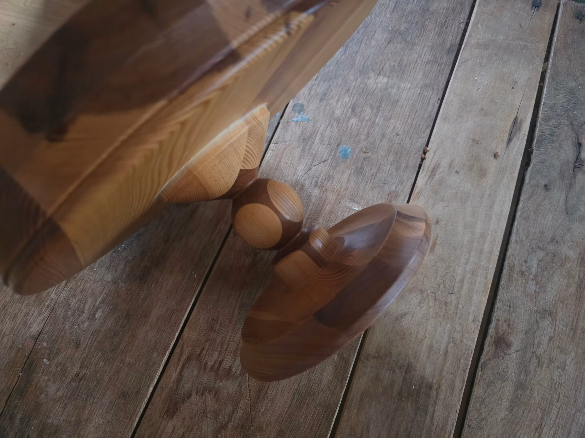Ett helt unikt och vackert gammalt fat på fot i trä som ger en varm och rustik känsla i ditt hem.