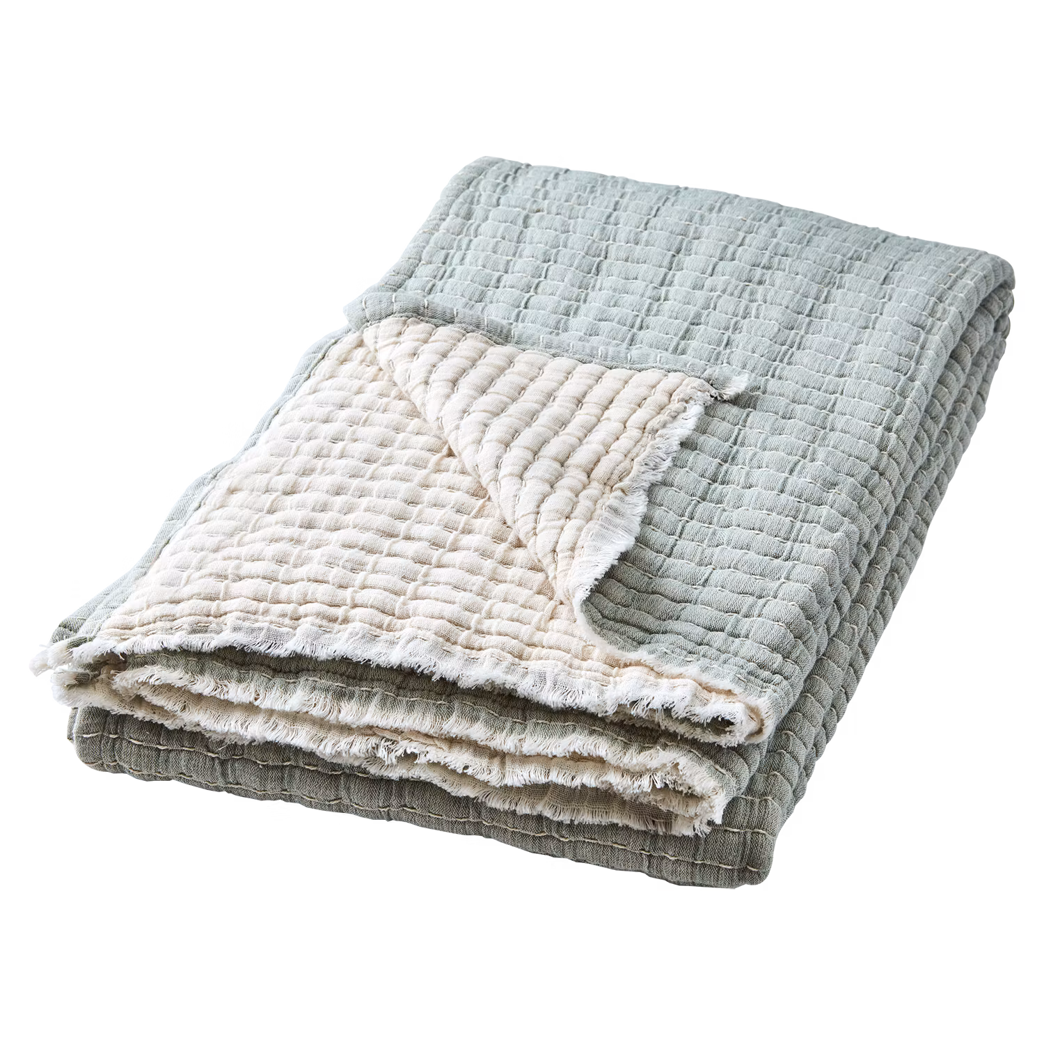 Våfflad filt i 100% bomull, Ljugrön, 200x130cm