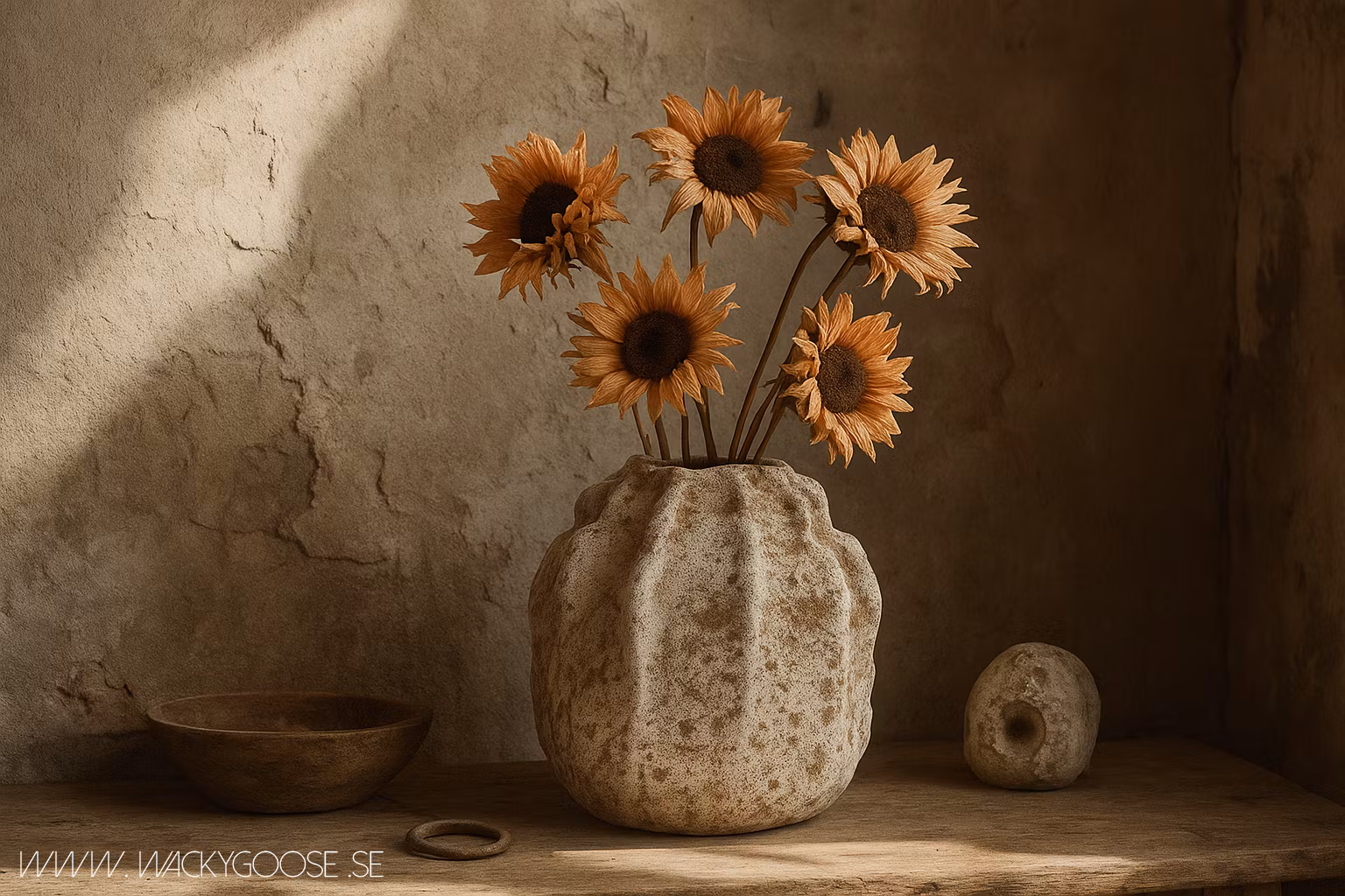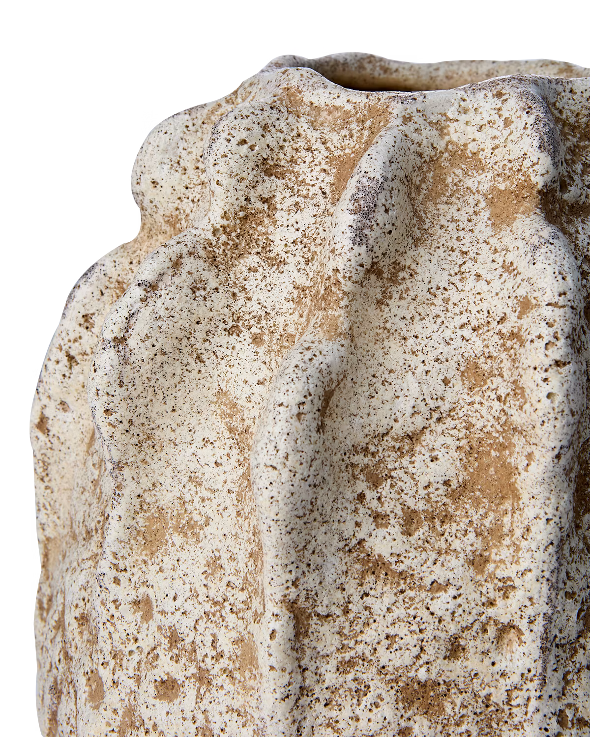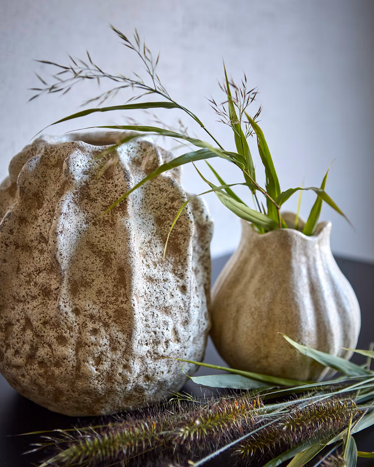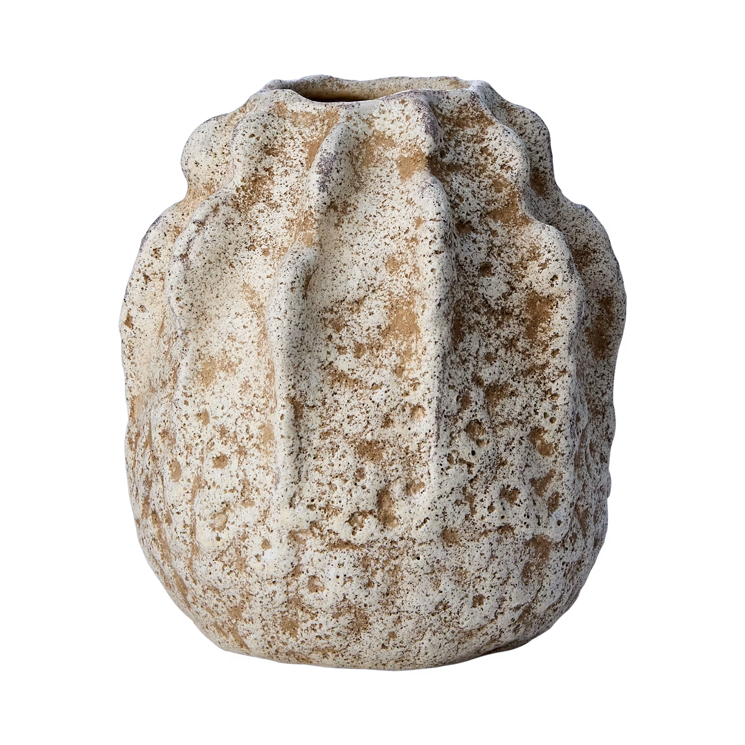 Vas i beige stengods har en tidlös och organisk design som kompletteras av en unik dubbelglaserad yta. Glaseringen skapar subtila nyansskiftningar som ger varje vas ett individuellt uttryck. Den harmoniska färgtonen gör att den passar lika bra med torkade blommor som med färska arrangemang, eller som en stilren dekoration i sig själv.